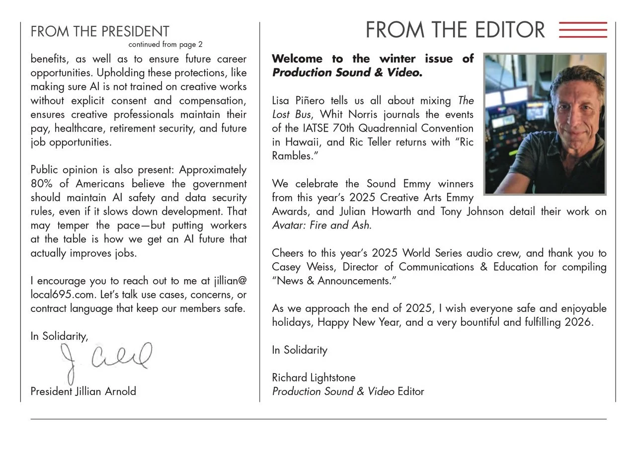 As I write this, I’m currently en route to work as the Recordist for The Daily Show’s coverage of the Republican National Convention (RNC) in Milwaukee. In August, I’ll fly home to Chicago to work the Democratic National Convention. These events have been a career bucket list item for as long as I can remember. Though I was supposed to check them off my list in 2020, the COVID-19 pandemic forced me to postpone endeavors until now. But this year’s election seems to hit a little closer to home. For the past year, I have poured my heart and soul into my research on artificial intelligence (AI) for this year’s Basic and Videotape Supplemental Agreement negotiations. A large part of that research revolved around copyright laws and how they pertain to our industry.